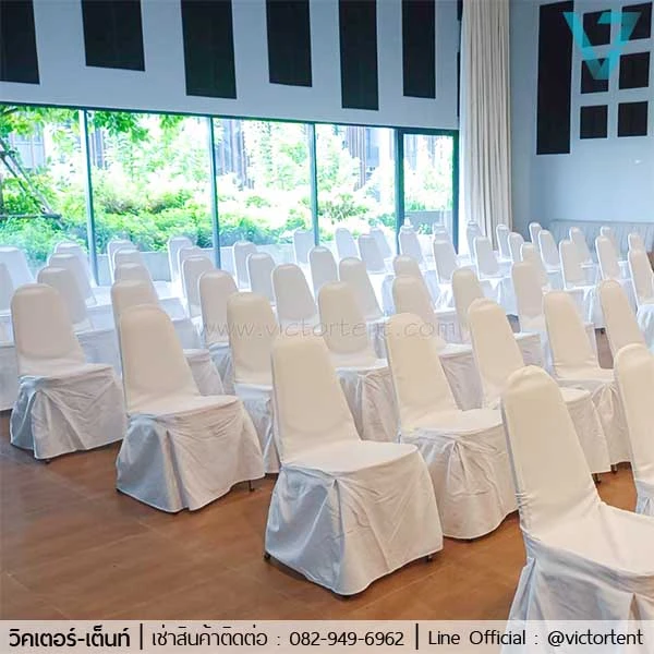 ให้เช่าเก้าอี้บุนวม พร้อมผ้าสีขาวสะอาด ราคาเพียงตัวละ 55 บาท ยิ่งใช้เยอะยิ่งลดเยอะ