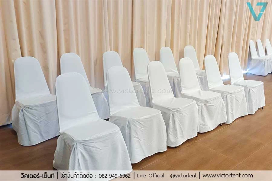 ให้เช่าเก้าอี้บุนวม เช่าเก้าอี้บุนวม คลุมผ้าสีขาว ราคาเป็นมิตร เพียง 55 บาท/ตัว