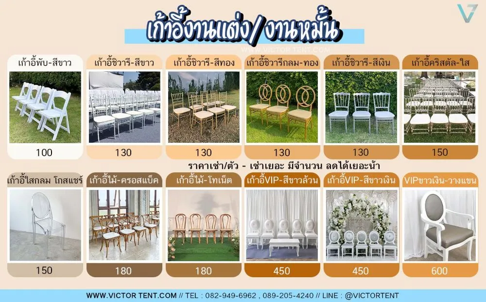 บริการให้เช่าเก้าอี้งานแต่ง เก้าอี้งานแต่งให้เช่า ราคาเริ่มต้นเพียงละ 100 บาท