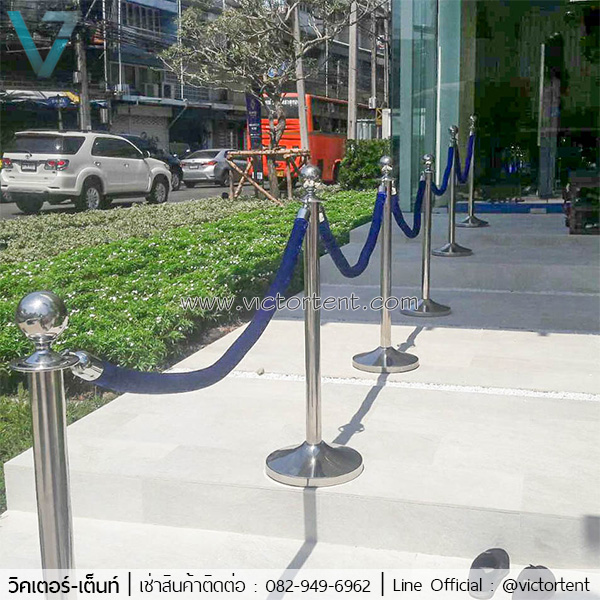 เสากั้นเขตสีสแตนเลส พร้อมสายสีน้ำเงินหรือสีแดง