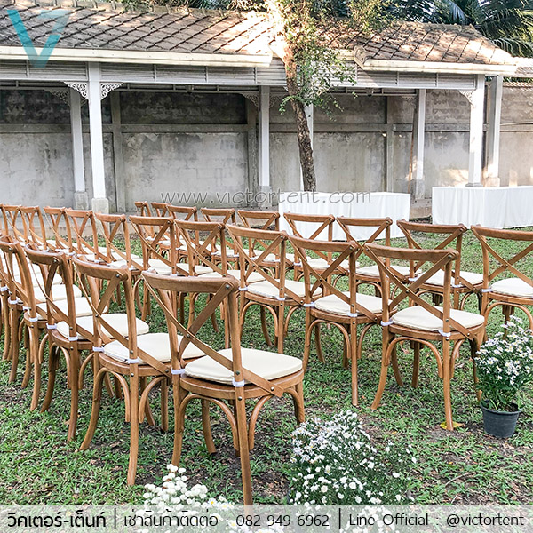 เก้าอี้ไม้ Cross Back ให้เช่าสำหรับงานในสวน งานแต่งงาน