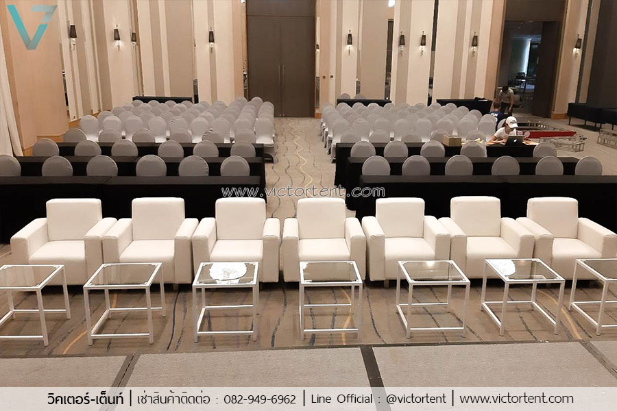 เช่าโซฟาขาว เช่า โซฟาเดี่ยวสีขาว ตัวละ 600 บาท ถ้าใช้งานเป็นชุด 5 ที่นั่ง ราคาชุดละ 2500 บาท พร้อมโต๊ะกลาง