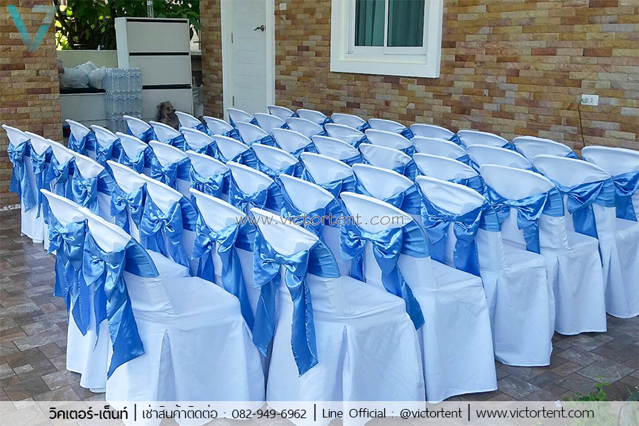เช่าเก้าอี้พลาสติก เช่าเก้าอี้พลาสติกสีขาว มีทั้งคลุมผ้า และไม่คลุมผ้า ตัว ละ 20 บาท คลุมผ้า 30 บาท ผูกโบว์ 40 บาท(มีโบว์หลากสีให้เลือก)