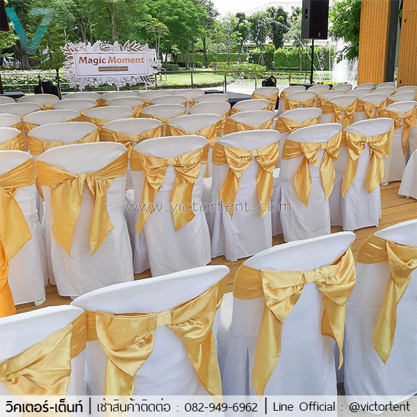 เช่าเก้าอี้พลาสติก เช่าเก้าอี้พลาสติกสีขาว มีทั้งคลุมผ้า และไม่คลุมผ้า ตัว ละ 20 บาท คลุมผ้า 30 บาท ผูกโบว์ 40 บาท(มีโบว์หลากสีให้เลือก)