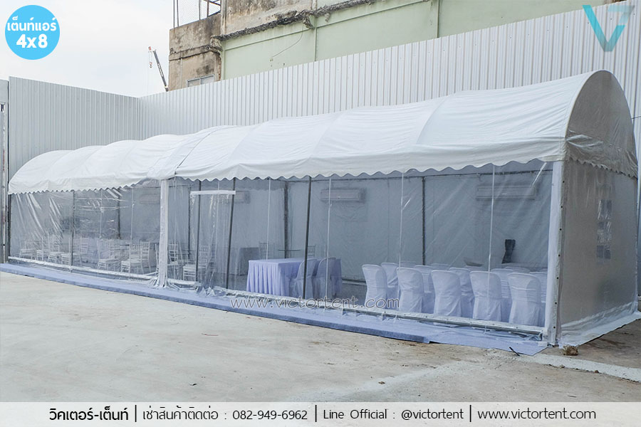 เช่าเต็นท์ติดแอร์ เช่าเต็นท์ ติดแอร์ ขนาด 4×8 ปิดผ้าใบรอบด้าน สำหรับรอบรองแขก แต่งตัวดารา งานพิธีการต่าง ๆ แขกวีไอพี ราคาเช่าหลังละ 16,000 บาท