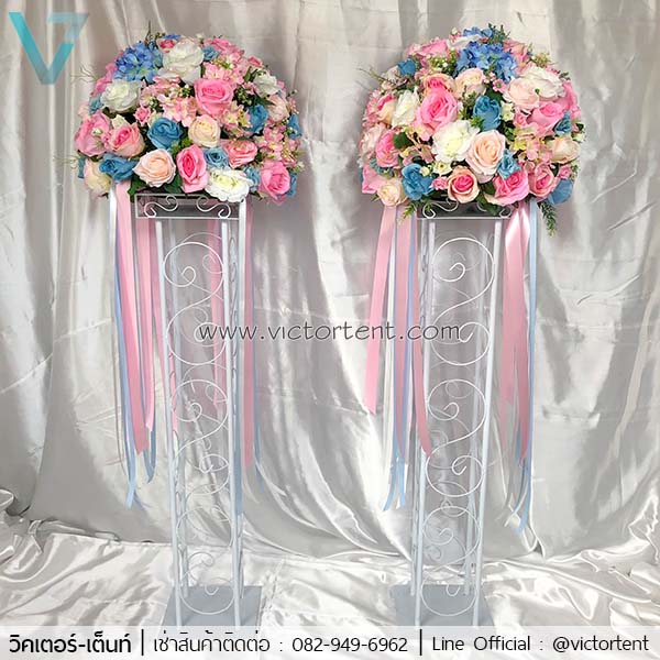 ให้เช่าแท่นวางดอกไม้+ดอกไม้สีชมพูฟ้าเพียง ต้นละ 500 บาท
