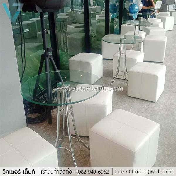 เช่าโต๊ะกระจก เช่าโต๊ะกระจกเจรจา ปิดการขาย ประกอบด้วยโต๊ะกระจก 1 ตัว เก้าอี้ 3 ตัว ชุดละ 1,000 บาท สำหรับเจรจาปิดการขาย