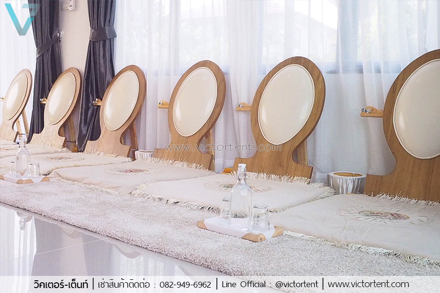 เช่าอาสนะสีไม้ธรรมชาติ หมู่ 7 พร้อมอุปกรณ์แก้ว ราคาเช่า 2000 บาท