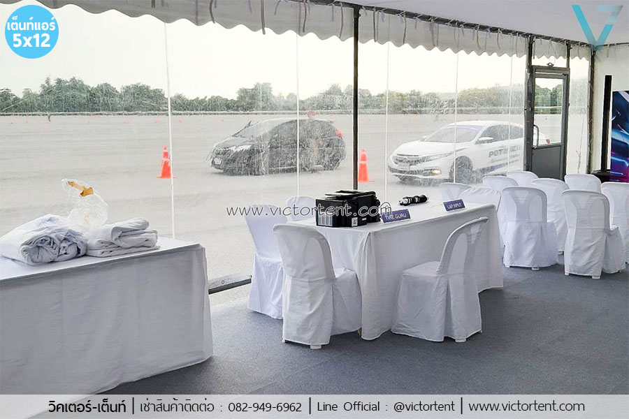 เช่าเต็นท์ติดแอร์ ขนาด 5×12 เมตร พร้อมผ้าใบใส