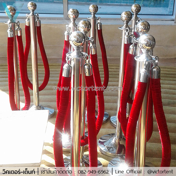 เช่าเสากั้นเขต ให้เช่าเสากั้นเขตสีเงิน สายคล้องกำมะหยี่สีแดง ราคาต้นละ 200 บาท ใช้งานหลายต้นมีส่วนลดพิเศษ
