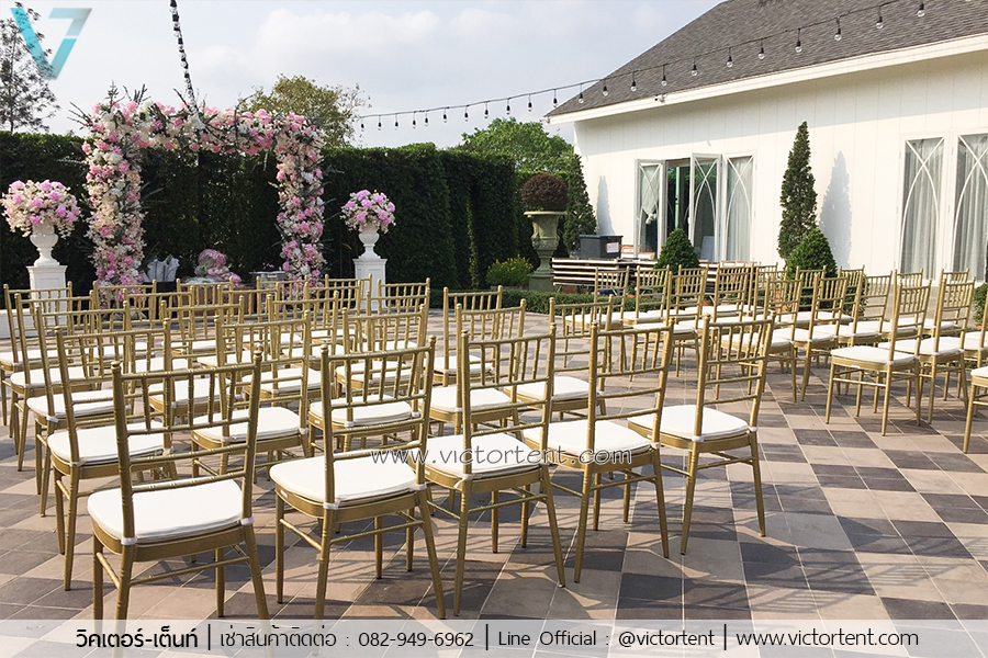 เช่าเก้าอี้ชิวารีทอง เช่าเก้าอี้ชิวารีสีทอง พร้อมเบาะสีขาว สีครีม หรือสีดำ ราคาเช่าตัวละ 100 บาท ถ้าใช้หลายตัวให้เช่าในราคาพิเศษ