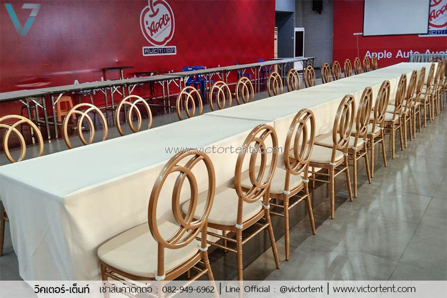 เช่าโต๊ะ-เก้าอี้ชิวารี เก้าอี้ชิวารีสีทองให้เช่า ให้เช่าเก้าอี้ชิวารี พนักกลมทอง ราคาถูก เพียงตัวละ 130 บาท ให้หลายตัวให้ราคาพิเศษ