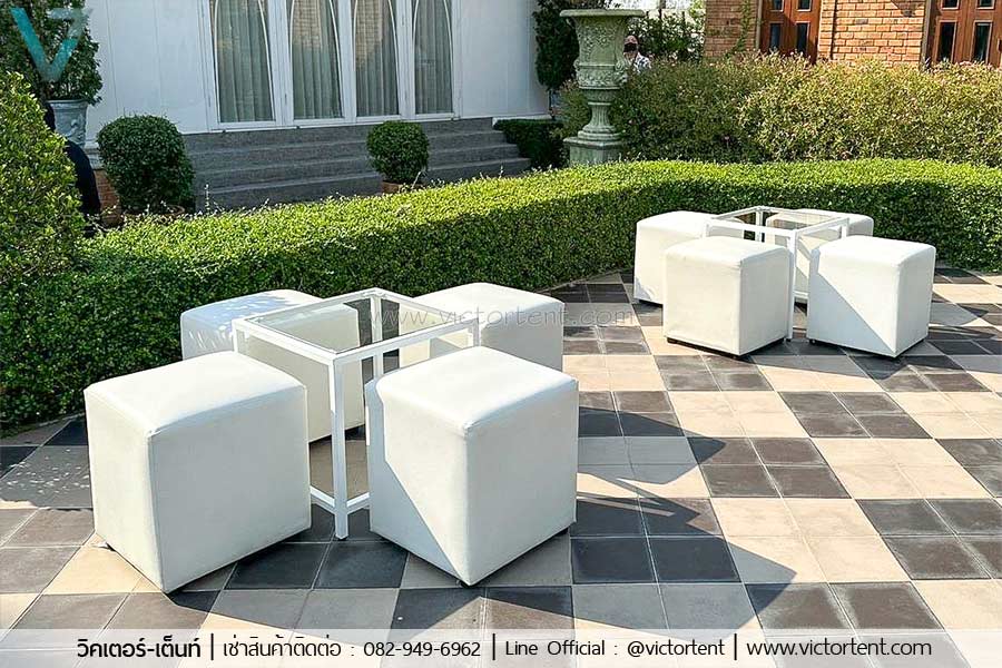 ให้เช่าชุดเก้าอี้ลูกเต๋าสีขาว ราคาเพียง 550 บาท ใช้เยอะสามารถลดได้