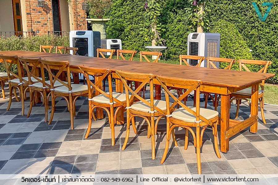 บริการให้เช่าโต๊ะไม้ เก้าอี้ไม้ เอ้าดอร์ ราคาเพียงชุดละ 1500 บาท