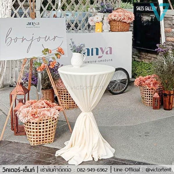 ให้เช่าโต๊ะบาร์สูง เช่าโต๊ะไฟเบอร์คลุมผ้า เช่าโต๊ะไฟเบอร์ ราคา 450 บาท