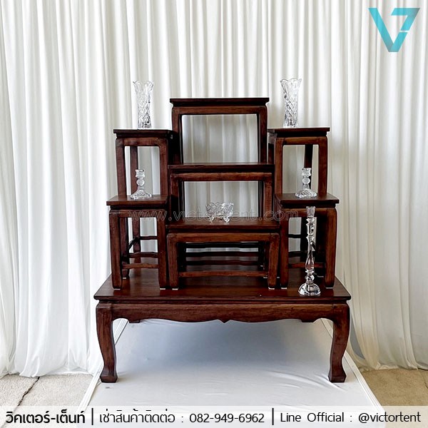เช่าชุดอุปกรณ์ทำบุญบ้าน ให้เช่าโต๊ะหมู่สีน้ำตาล เช่าโต๊ะหมู่บูชา เช่าเซ็ททำบุญบ้าน ราคาไม่แพงเพียง 1500 บาท