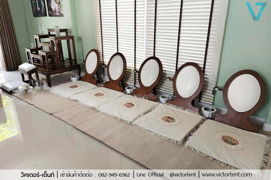 ให้เช่าชุดโต๊ะหมู่บูชา เช่าโต๊ะหมู่สีไม้เข้ม อาสนะสีไม้ ราคาเพียงชุดละ 3500 บาท