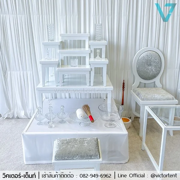 ให้เช่าอุปกรณ์ทำบุญบ้านสีขาว สไตล์มินิมอล ราคาชุดละ 8000 บาทเท่านั้น