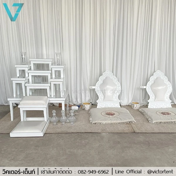 เช่าโต๊ะหมู่สไตล์โมเดิร์น ให้เช่าอุปกรณ์จัดงานบุญ เช่าชุดอุปกรณ์ทำบุญบ้าน สไตล์โมเดิร์น ราคาเพียง 3500 บาท/ชุด