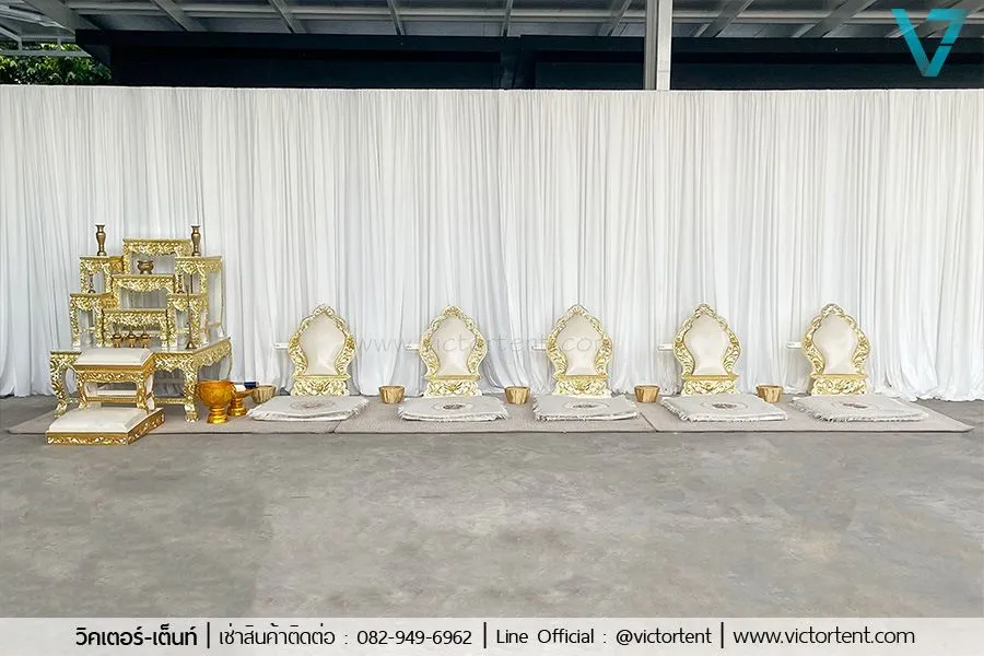 บริการให้เช่าอุปกรณ์ทำบุญบ้าน สีทอง สไตล์ไทยโมเดิร์น ราคาชุดละ 3500 บาท